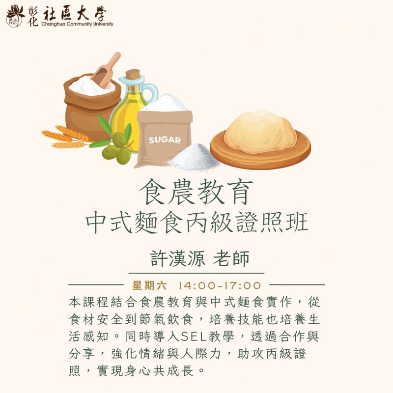 | 食農與安全衛生法規 | 1. 相見歡與分組和安全衛生事項 2. 認識農特產原料、特性和加工 3. 熟悉食安衛生法規 |