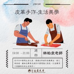 | 認識皮革與生活藝術 | 新生:介紹皮革種類、工具與基礎安全操作,並引導學員思考皮革與生活美學的連結。 舊生:入門皮件製作 |