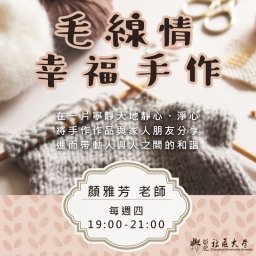 | 療癒小物:配件製作 | 新學員:製作簡單配件(圍巾/帽子);舊學員:挑戰精緻裝飾 |
