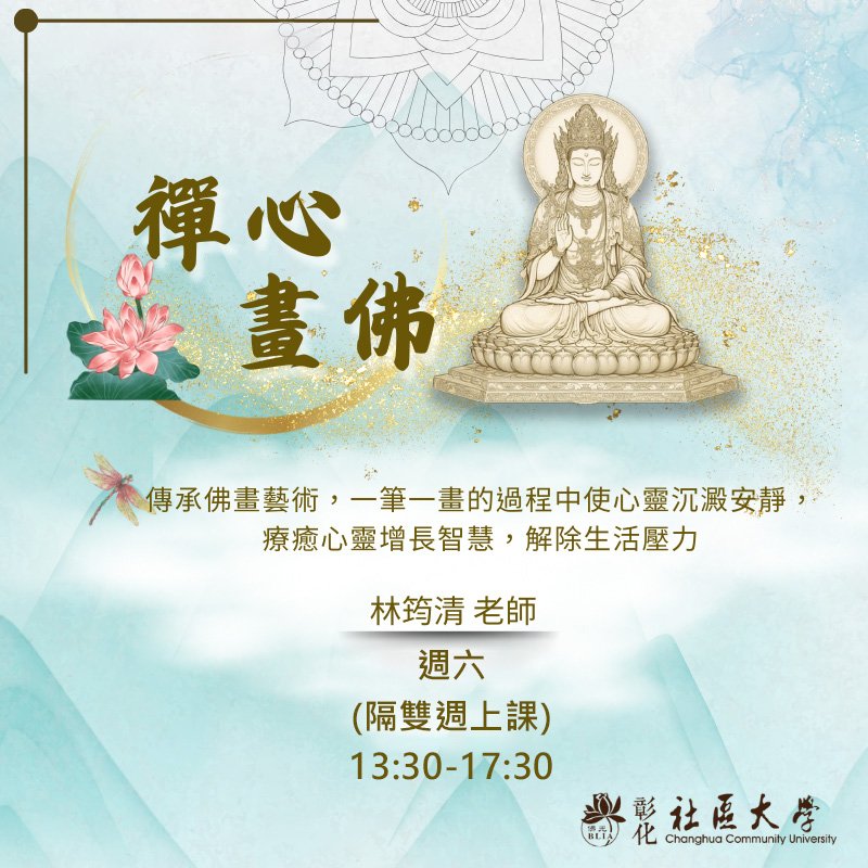 | 禪心畫佛 | 新生:認識工筆佛畫 課程說明,工筆佛畫歷史與美學分享,學員自我介紹,建立學習社群。 舊生進階佛畫賞析 分享歷代佛畫經典,討論風格差異與情緒表現,設定學習目標。 |