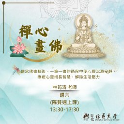 | 禪心畫佛 | 新生:學習佛畫基本構圖,練習小幅作品的完整框架。 舊生:色彩心理學應用 探討色彩與情緒影響,嘗試自由搭配增添氛圍。 |