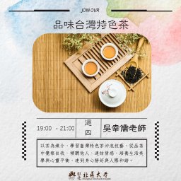 | 第八週 | 8 | 花香與果韻的創意茶 | 體驗在地特色茶茉莉花茶,創作屬於自己的「心情茶」。 |